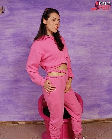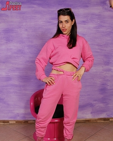 Sexy brunette Petra is flat-out gorgeous and exudes sexiness even without showing much skin. Look at her. She looks hotter than a chimichanga in a comfortable pink training suit. Her fabulous feet are clad in a pair of Balenciaga sneakers. The gorgeous stunner takes off her shoes and pink Gucci socks, sniffs them, and lures you with her freshly French-manicured feet. When she does a toe spread, it makes her delectable feet look gorgeously awesome.
