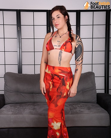 This web site contains sexually explicit material:Wearing an orange bikini and skirt, Lilith radiates a beauty that can get the attention of any man who will look her way. The brunette diva speaks with confidence as she recounts her day. She also can’t help but talk about how she walks barefoot as she flaunts her bare feet. The soles of Lilith’s feet are now so dirty and wrinkly that she wishes for a man’s saliva to moisturize them for a while. The thought of a wet tongue gliding on her dirty soles is making the inked vixen wet and horny. She moves her feet, showing how perfect they are for foot worship. Wanting to flaunt more, Lilith slowly undid her string bikini so she could show off her small titties. Her nipples are now cold and hard, but the best view is still her delectable feet that need the immediate attention of a horny man.