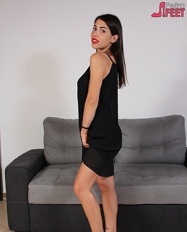 This web site contains sexually explicit material:When a girl like Petra decides to seduce you, you have no chance of battling it. She can do it with her bare feet, nylons, high heels, sandals, you name it. In this video, she is looking amazing as always in her sexy black dress and her black sandals on her incredible feet. She is playing with her toes and feet in those sandals by constantly dangling them and dipping her feet in and out of them at all times. She has no nylons on her legs and her amazing toes can be seen so happy as the sandals straps go between them. Petra will just make you feel so good just by watching her enjoy her new shoes and that is the entire beauty of her foot fetish game.